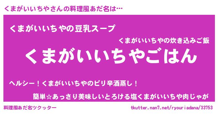 | 意味不明あだ名 | 『たけのこ科くまがいいちや属』 |
