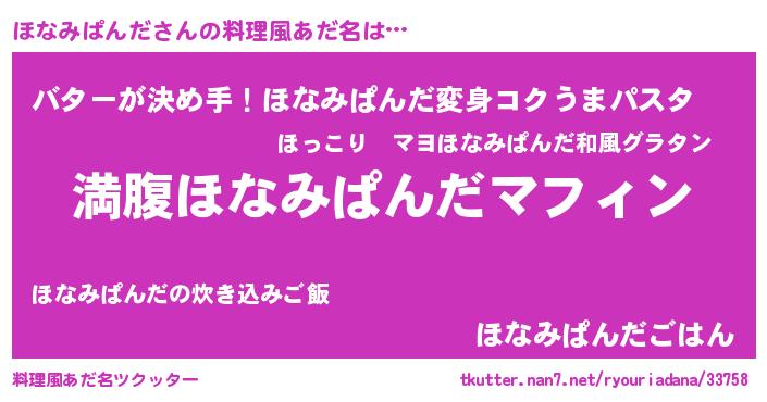 | 女子向けラノベタイトル風あだ名 | 『異世界で失敗しない100のほなみぱんだ』 |