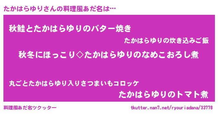 | ヒーロー風カッコイイあだ名 | 『ネオタカハラユリ』『仮面タカダー』 |
