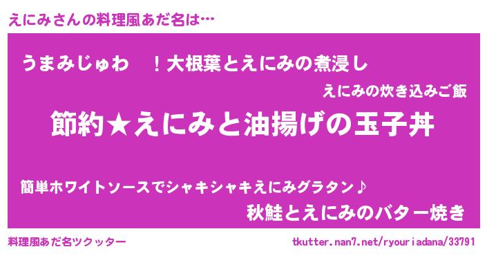 | 意味不明あだ名 | 『ペロリンえにみ』『えにみフォーエバー』 |