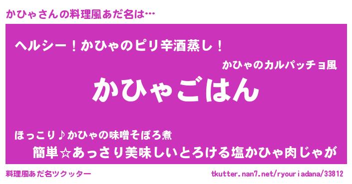 | 男性向けラノベタイトル風あだ名 | 『カヒャスレイヤー』『魔弾の王とかひゃ』 |