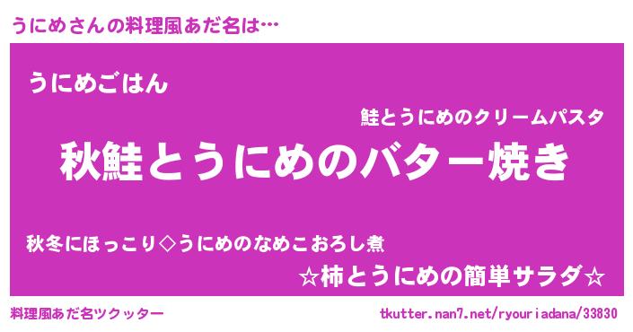 | 女子向けラノベタイトル風あだ名 | 『うにめの契約王妃』『死神うにめの再婚』 |