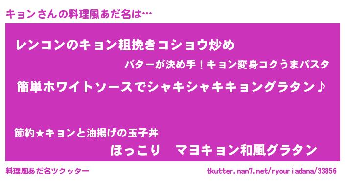 | ヒーロー風カッコイイあだ名 | 『炎刃騎士キョ』『サイバー戦士キョン』 |