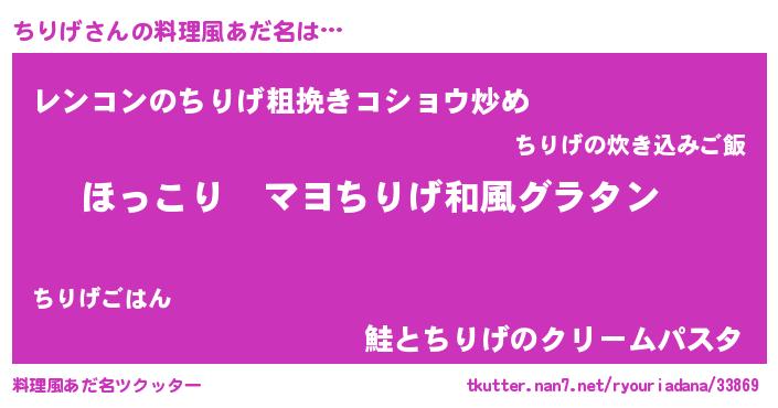 | 男性向けラノベタイトル風あだ名 | 『この素晴らしい世界にちりげを!』 |