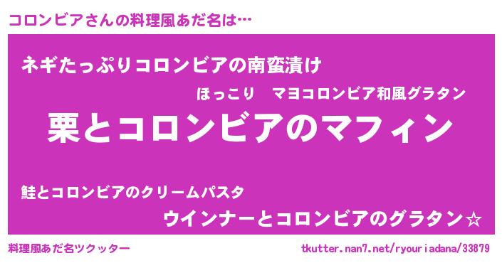 | 女子向けラノベタイトル風あだ名 | 『首の姫と首なしコロンビア』 |