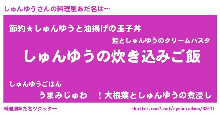 | ヘコむあだ名 | 『しゅふぇ~』『なまこ酢』『しゅお』 |
