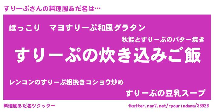 | ヒーロー風カッコイイあだ名 | 『仮面スリダー』『天弓騎士スリ』 |