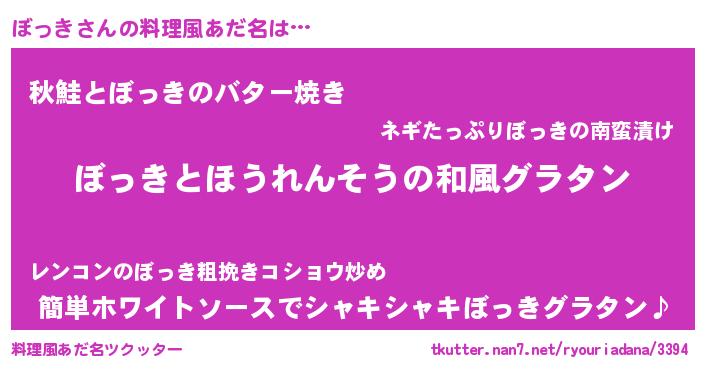 | ヘコむあだ名 | 『ぼっき(遠い目)』『ぼっっちょ』 |