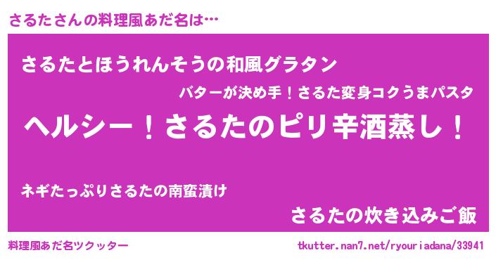 | 女子向けラノベタイトル風あだ名 | 『闇のさるた』『さるたの玉の輿計画!』 |