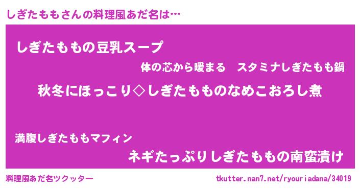 | 男性向けラノベタイトル風あだ名 | 『しぎたももに滅ぼされるだけの簡単なお仕事です』 |