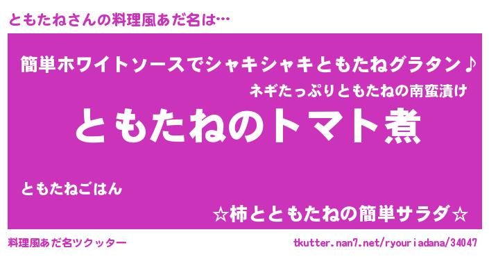 | ヘコむあだ名 | 『ともぷりん』『ともふぇ~』『豆乳』 |