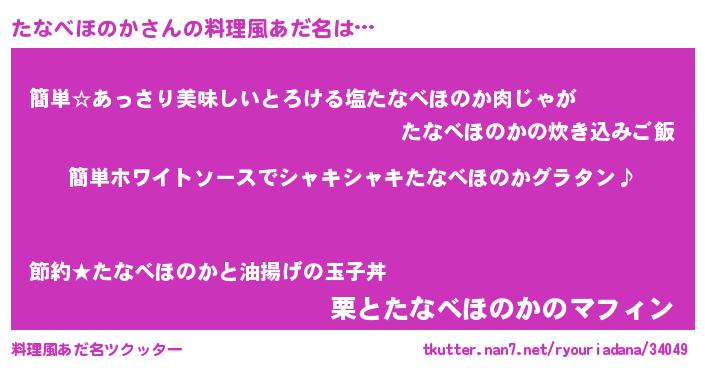 | 男性向けラノベタイトル風あだ名 | 『たなべほのかの嫁は女の子じゃないと思った?』 |
