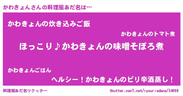 | 男性向けラノベタイトル風あだ名 | 『かわきょんの憂鬱』 |