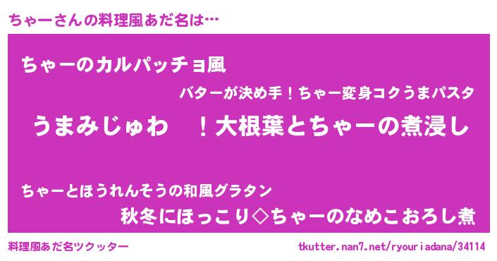 | 女子向けラノベタイトル風あだ名 | 『ちゃーの婚約者』『ちゃー恋絵巻』 |