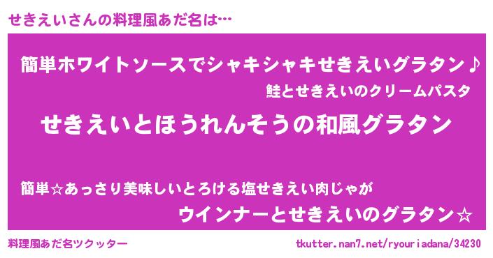| ピコ太郎風あだ名 | 『セキ四郎』『ピセ一郎』『セセ太郎』 |