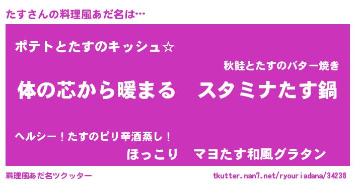 | 女子向けラノベタイトル風あだ名 | 『たすの雑貨屋さん』『たすの契約王妃』 |