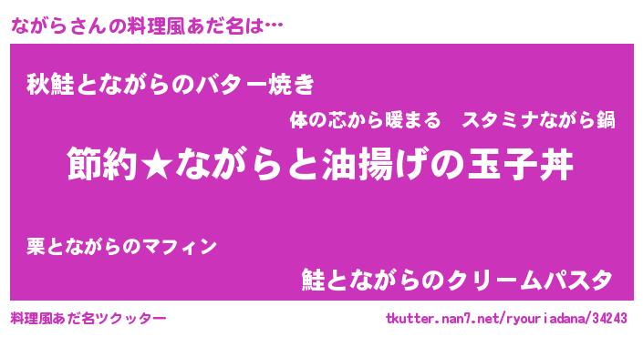 | 男性向けラノベタイトル風あだ名 | 『ながらの憂鬱』『はたらくながらさま!』 |