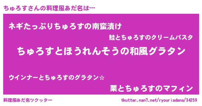 | 男性向けラノベタイトル風あだ名 | 『ちゅろす~年齢イコール彼女いない歴の魔法使い~』 |