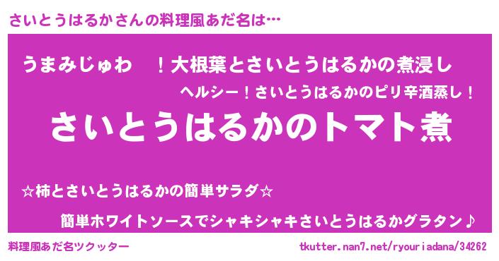 | 男性向けラノベタイトル風あだ名 | 『おまえをオタクにしてやるから、俺をさいとうはるかにしてくれ! 』 |