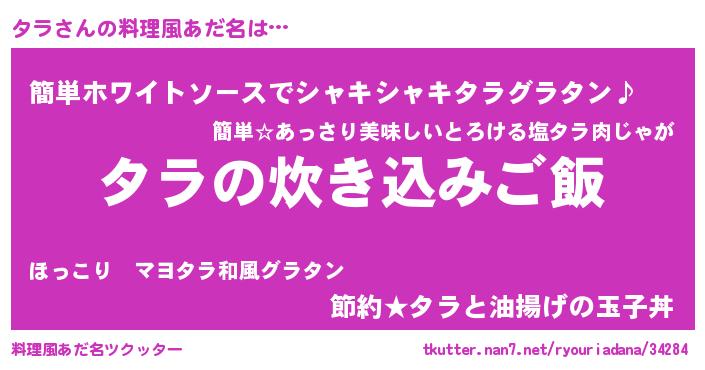 | ヘコむあだ名 | 『タラぷりん』『タラふぇ~』『豆乳』 |