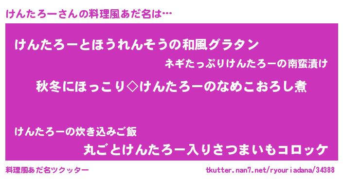| ピコ太郎風あだ名 | 『ケコ一郎』『ケン六郎』『ピケ六郎』 |