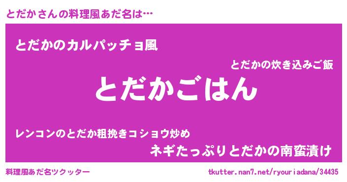 | 男性向けラノベタイトル風あだ名 | 『トダカスレイヤー』『魔弾の王ととだか』 |