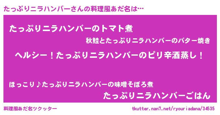 | 欧米人風あだ名 | 『ケンブリッジたっぷりニラハンバー』 |