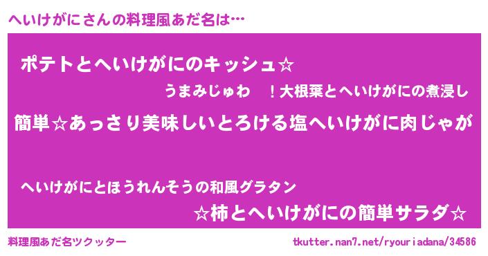 | 意味不明あだ名 | 『永久保存へいけがに』『自称へいけがに』 |