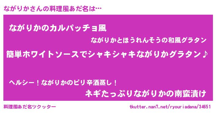 | 男性向けラノベタイトル風あだ名 | 『ながりかの嫁は女の子じゃないと思った?』 |