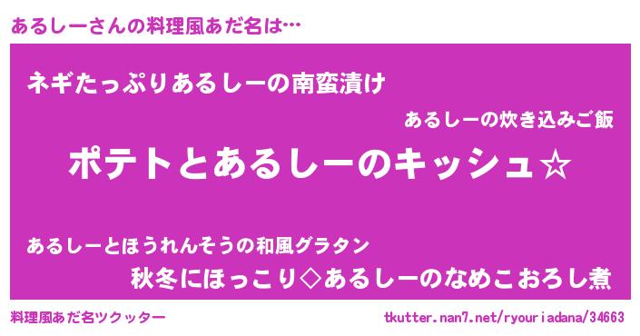 | 女子向けラノベタイトル風あだ名 | 『あるしーの卵を拾いまして』 |