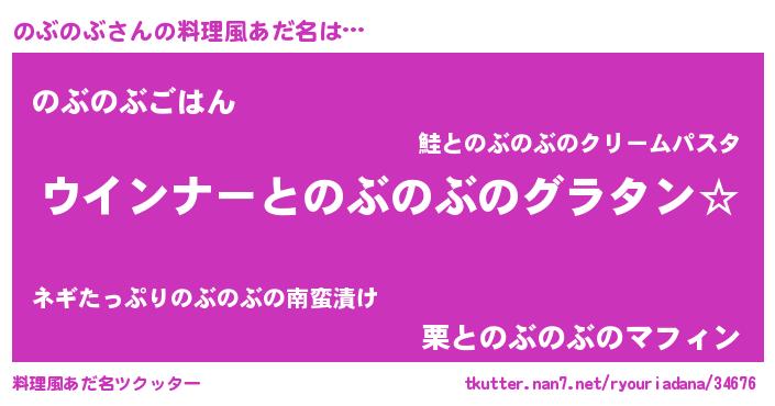 | ヘコむあだ名 | 『なまこ酢』『のぶっふぃ~』 |