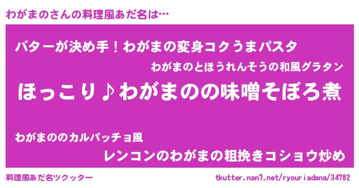 | 意味不明あだ名 | 『ペロリンわがまの』『自称わがまの』 |
