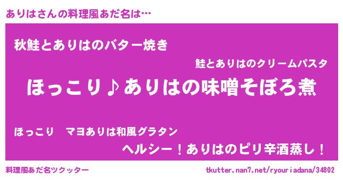 | 意味不明あだ名 | 『ペロリンありは』『永久保存ありは』 |