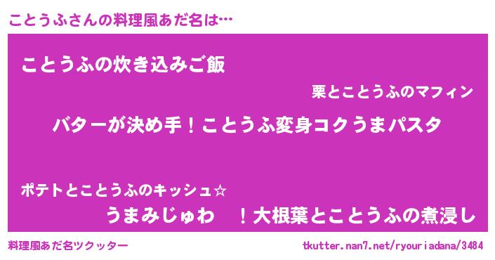 | 女子向けラノベタイトル風あだ名 | 『ことうふ恋絵巻』『ことうふの婚約者』 |