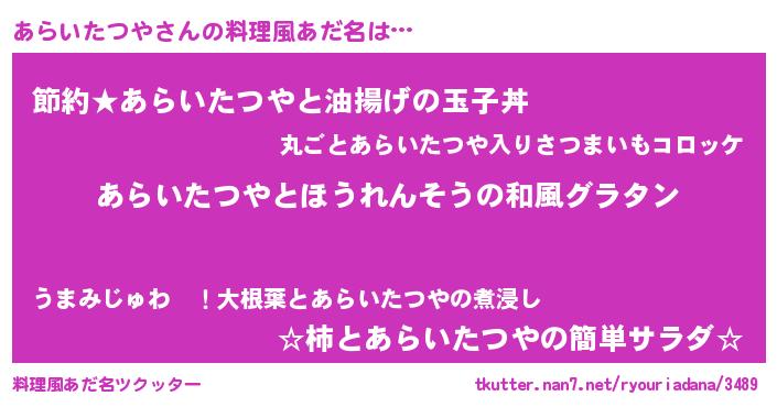 | 女子向けラノベタイトル風あだ名 | 『あらいたつやの玉の輿計画!』 |