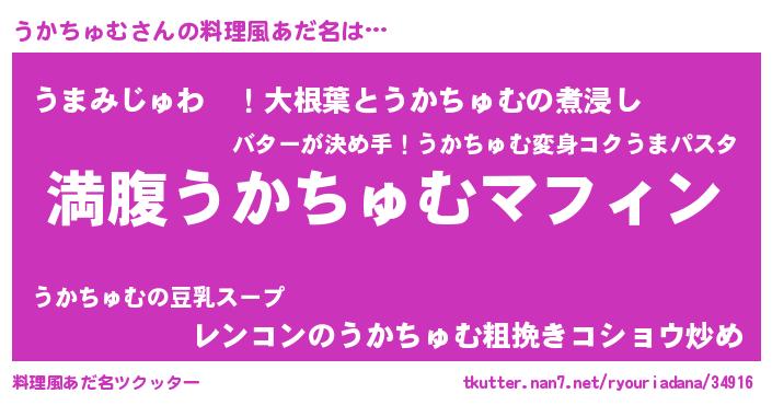 | 胡散臭い通販商品みたいなあだ名 | 『絶対に幸福をもたらす健康食品…その名も「うかちゅむ」』 |
