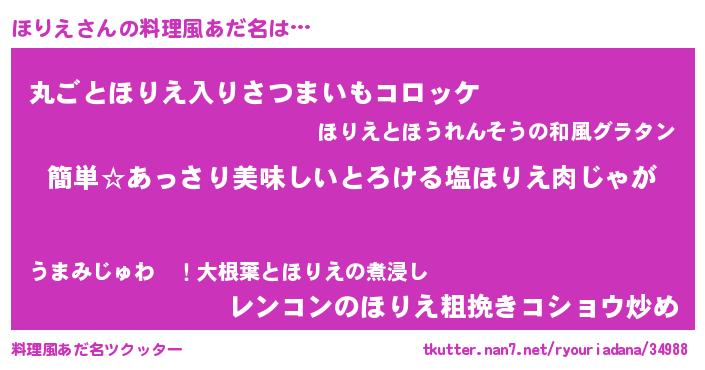 | ヘコむあだ名 | 『ほりえ(苦笑)』『豆乳』『ほり太郎』 |