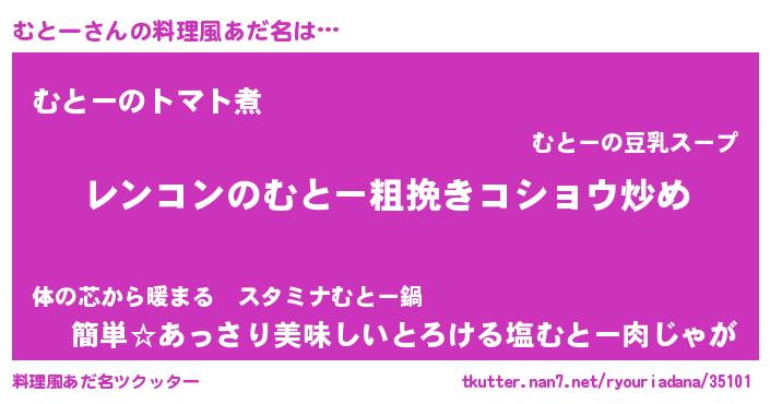 | ヘコむあだ名 | 『むとー(笑)』『むとを』『酢こんぶ』 |