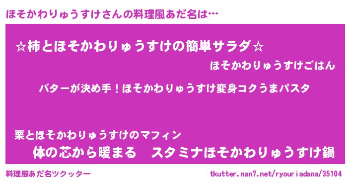 | 女子向けラノベタイトル風あだ名 | 『ほそかわりゅうすけ恋絵巻』 |