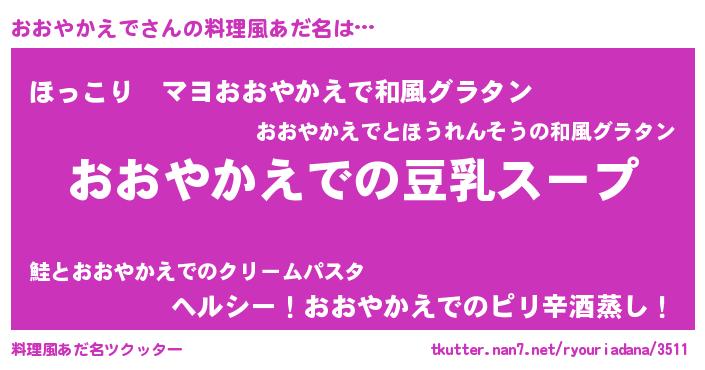 | 胡散臭い通販商品みたいなあだ名 | 『信頼と実績のサプリメント…その名も「おおやかえで」』 |