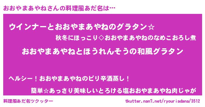 | 肩書あだ名 | 『おおやまあやね少将』 |