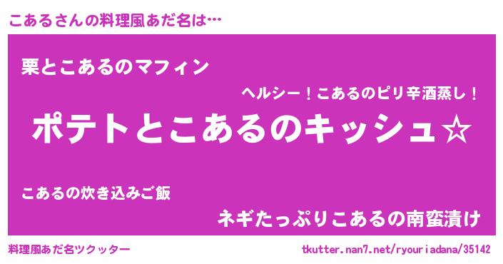 | 女子向けラノベタイトル風あだ名 | 『こあるの卵を拾いまして』『闇のこある』 |