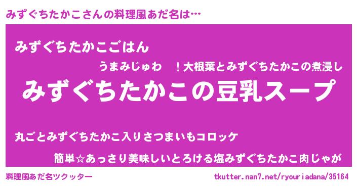 | ポケモン風あだ名 | 『ヒミズグチタカコ』『ミズキング』 |