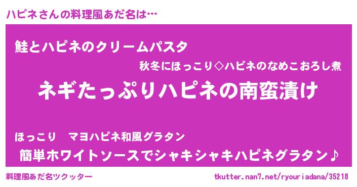| ポケモン風あだ名 | 『ハピチュウ』『ハックウザ』 |