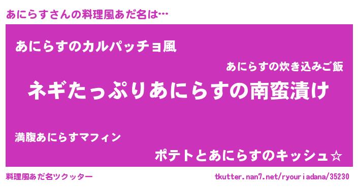| 意味不明あだ名 | 『ペロリンあにらす』『永久保存あにらす』 |