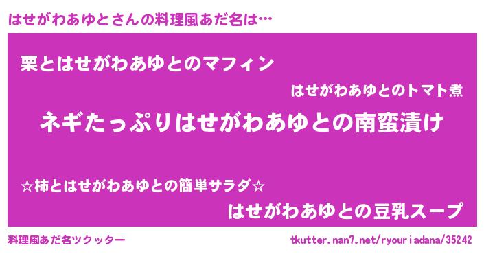 | 男性向けラノベタイトル風あだ名 | 『ハセガワアユトアートオンライン』 |