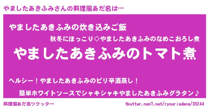 | 男性向けラノベタイトル風あだ名 | 『おまえをオタクにしてやるから、俺をやましたあきふみにしてくれ! 』 |