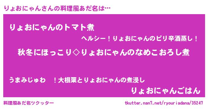 | 男性向けラノベタイトル風あだ名 | 『りょおにゃんに滅ぼされるだけの簡単なお仕事です』 |