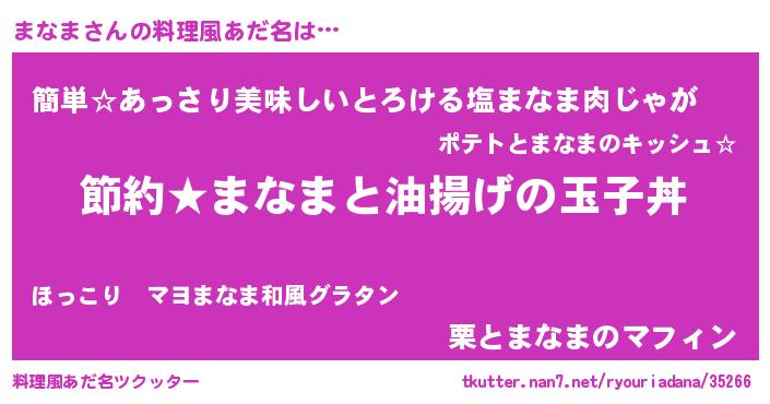 | 欧米人風あだ名 | 『マイケルまなま』『ダルビッシュまなま』 |