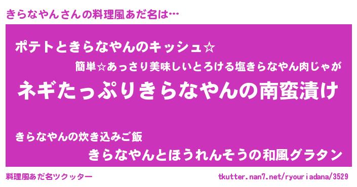 | ヘコむあだ名 | 『きらふぇ~』『きら太郎』『つくし』 |